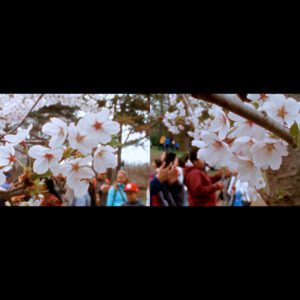 In the spirit of the fleeting moment, this double channel view point choreographs a dance within the chaotic ritual of viewing cherry blossoms and the crowds visiting Toronto’s High Park.